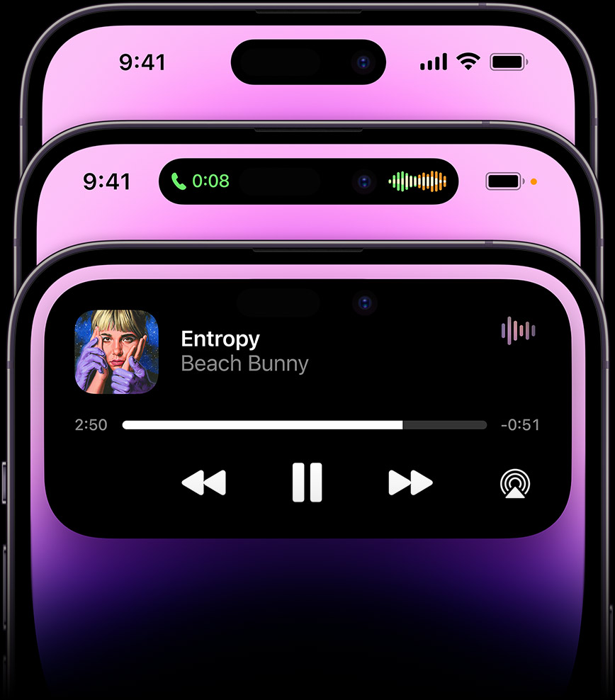 Представляем Dynamic Island, поистине инновацию Apple, состоящую из аппаратного и программного обеспечения и чего-то промежуточного. Он отображает музыку, спортивные результаты, FaceTime и многое другое — и все это, не отрывая вас от того, что вы делаете.